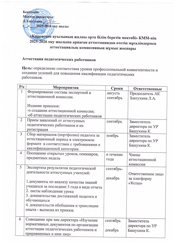 Педагогтерді аттестаттаудың перспективалық жоспары 2025-2026