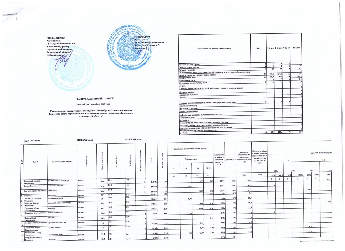 01.09.2025 тарифтеу тізімі